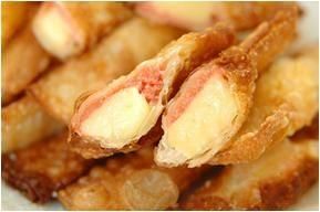 明太子とチーズを春巻き風に一本一本丁寧に手巻きしています。